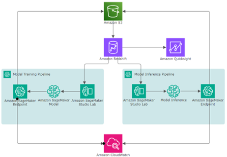 We used Redshift to create external tables on top of our S3 buckets and operated in SageMaker to train, test, and deploy our model. We set our model training and model inference pipelines on two different schedules. The training pipeline runs prior to each new semester to re-train the model on new data and the inference pipeline performs batch inference weekly. The results are made available as numeric risk scores and binary risk classifications on a QuickSight dashboard for Morehouse personnel who can then curate the list of at-risk students and create customized intervention plans for them.